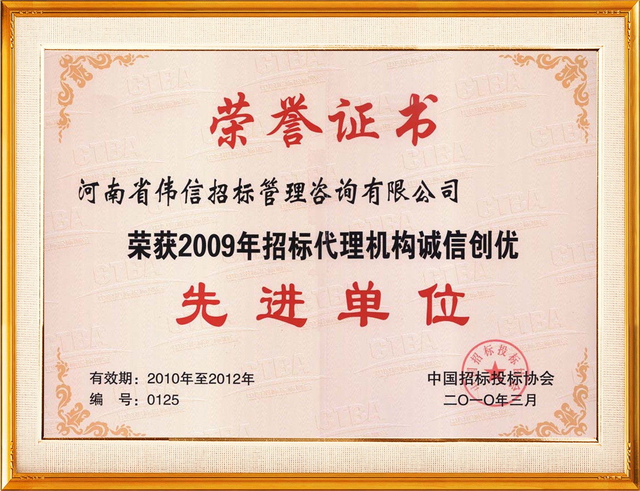 2009年誠(chéng)信創(chuàng)優(yōu)先進(jìn)單位