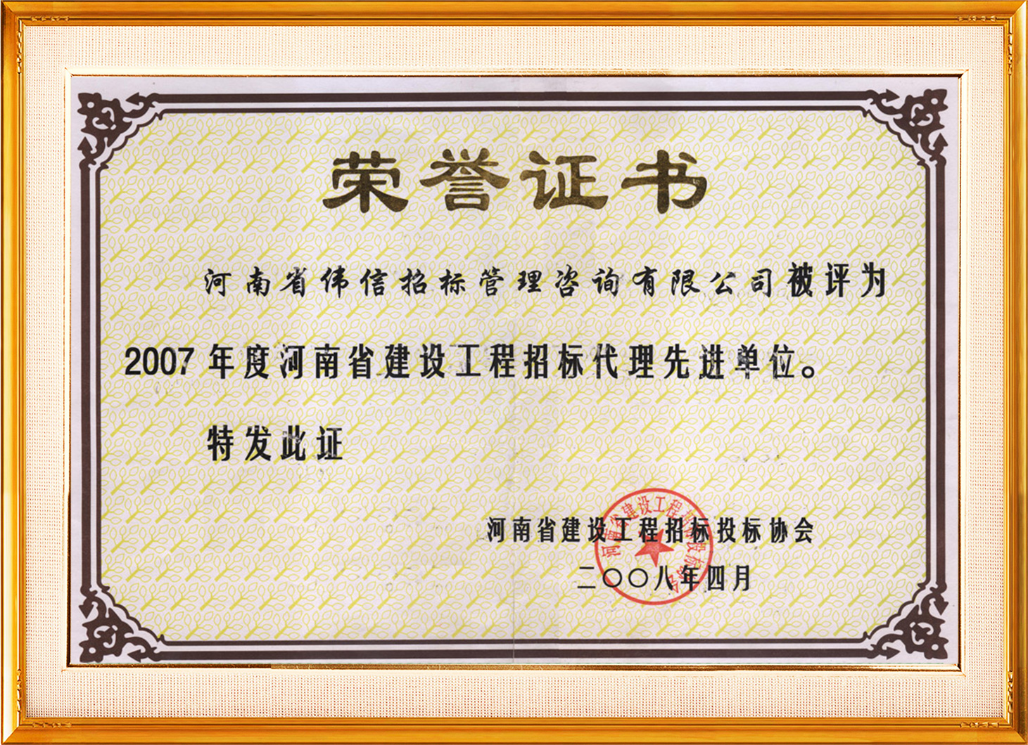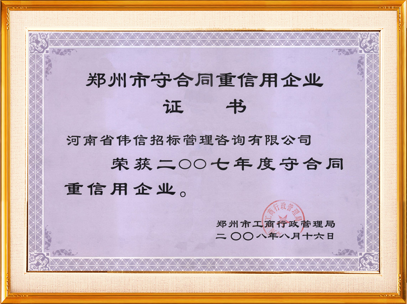 2007年招標(biāo)代理誠(chéng)實(shí)守信單位