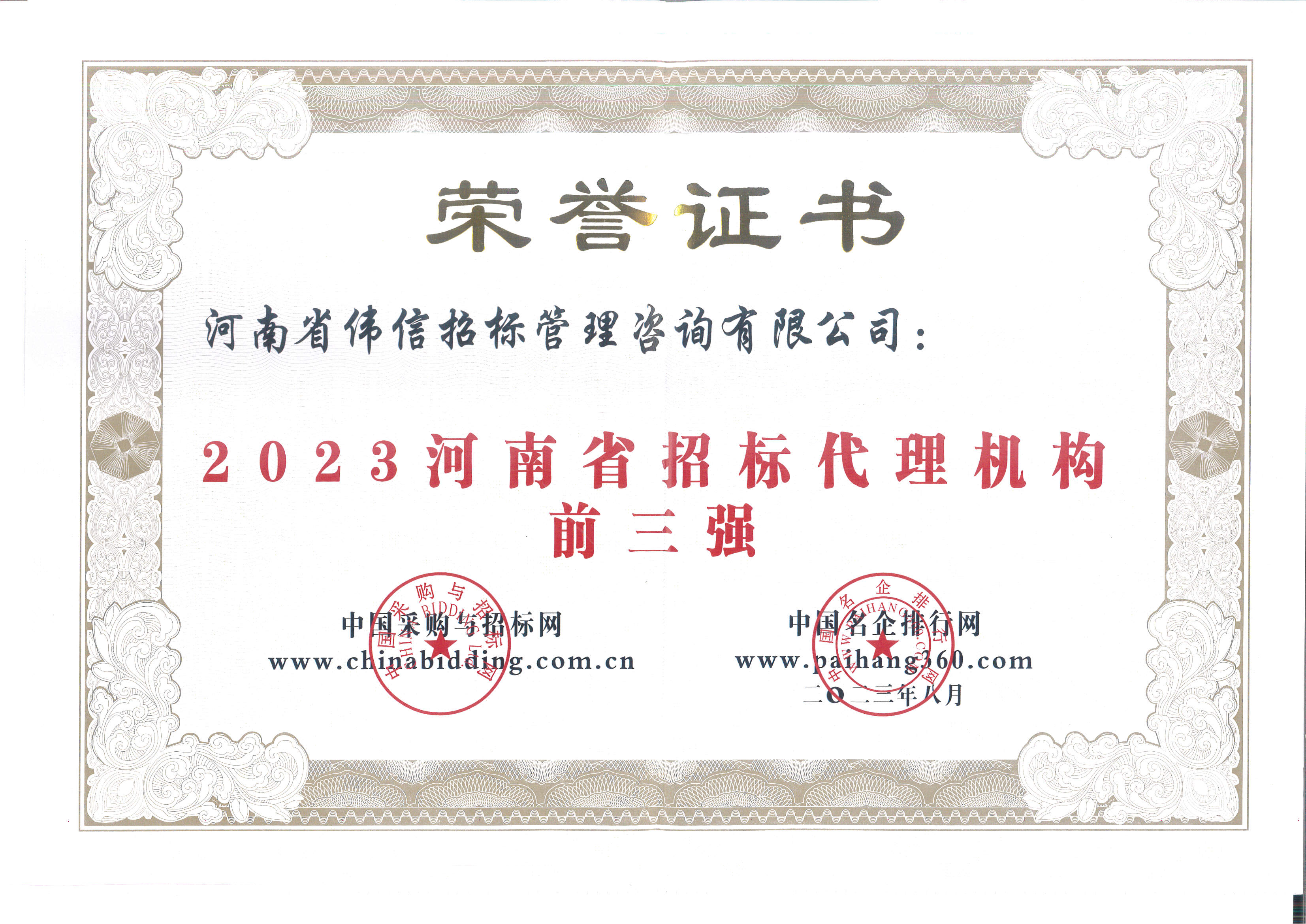 公司喜獲2023河南省招標代理機構(gòu)前三強