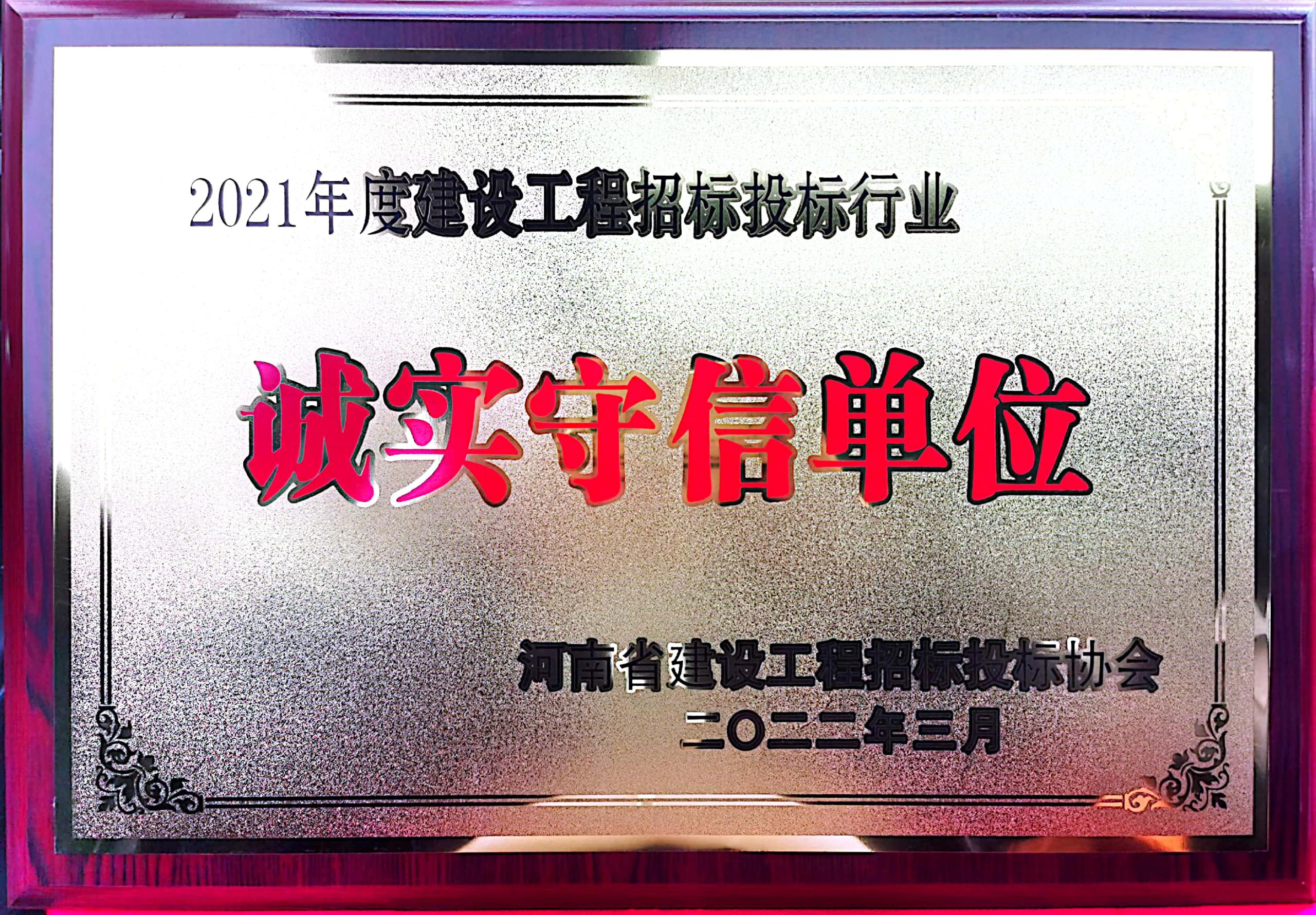 河南省偉信招標管理咨詢有限公司榮獲河南省建設工程投標協會頒發的2021年度建設工程招標投標行業誠實守信單位